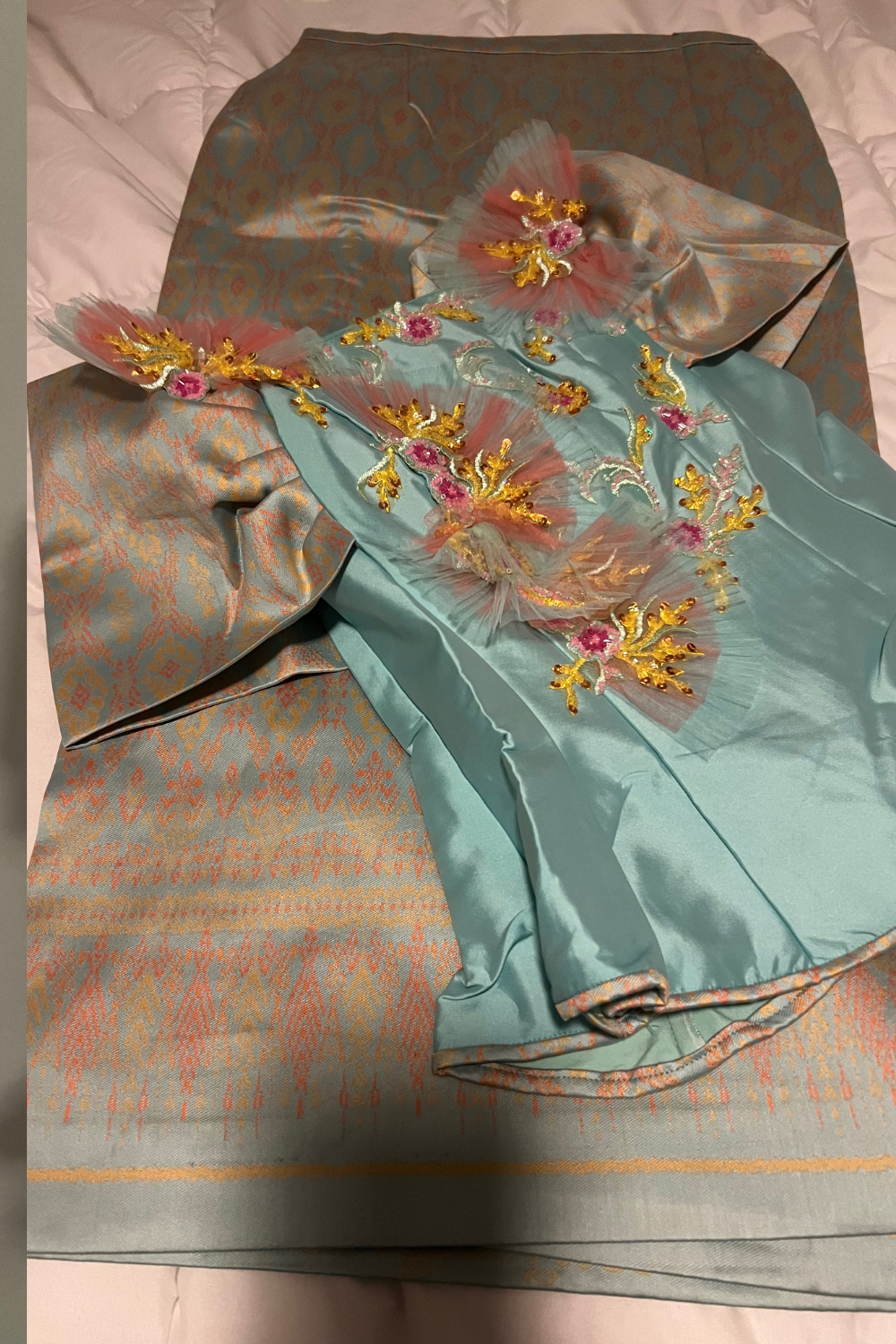These sets usually feature soft, silky fabrics and Khmer-inspired patterns that shine beautifully in any lighting. Whether you’re celebrating love at a wedding, attending a special event, or honoring tradition at the temple, a Cambodian two-piece gives you that polished, respectful, and timeless look.