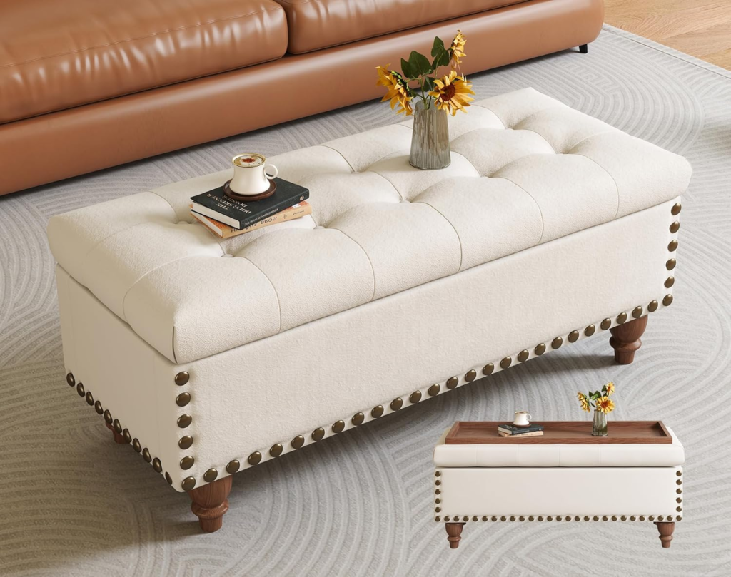 A storage ottoman is one of the most flexible pieces of furniture for small spaces. It can work as a footrest, extra seating, coffee table alternative, or hidden storage box.