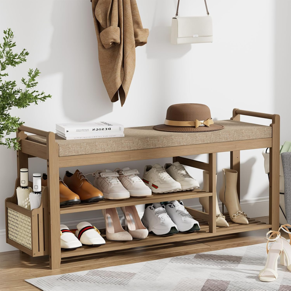 The biggest advantage of a shoe storage bench is that it helps keep the entryway tidy. Instead of shoes piling up by the door, they can be stored neatly inside or underneath the bench.