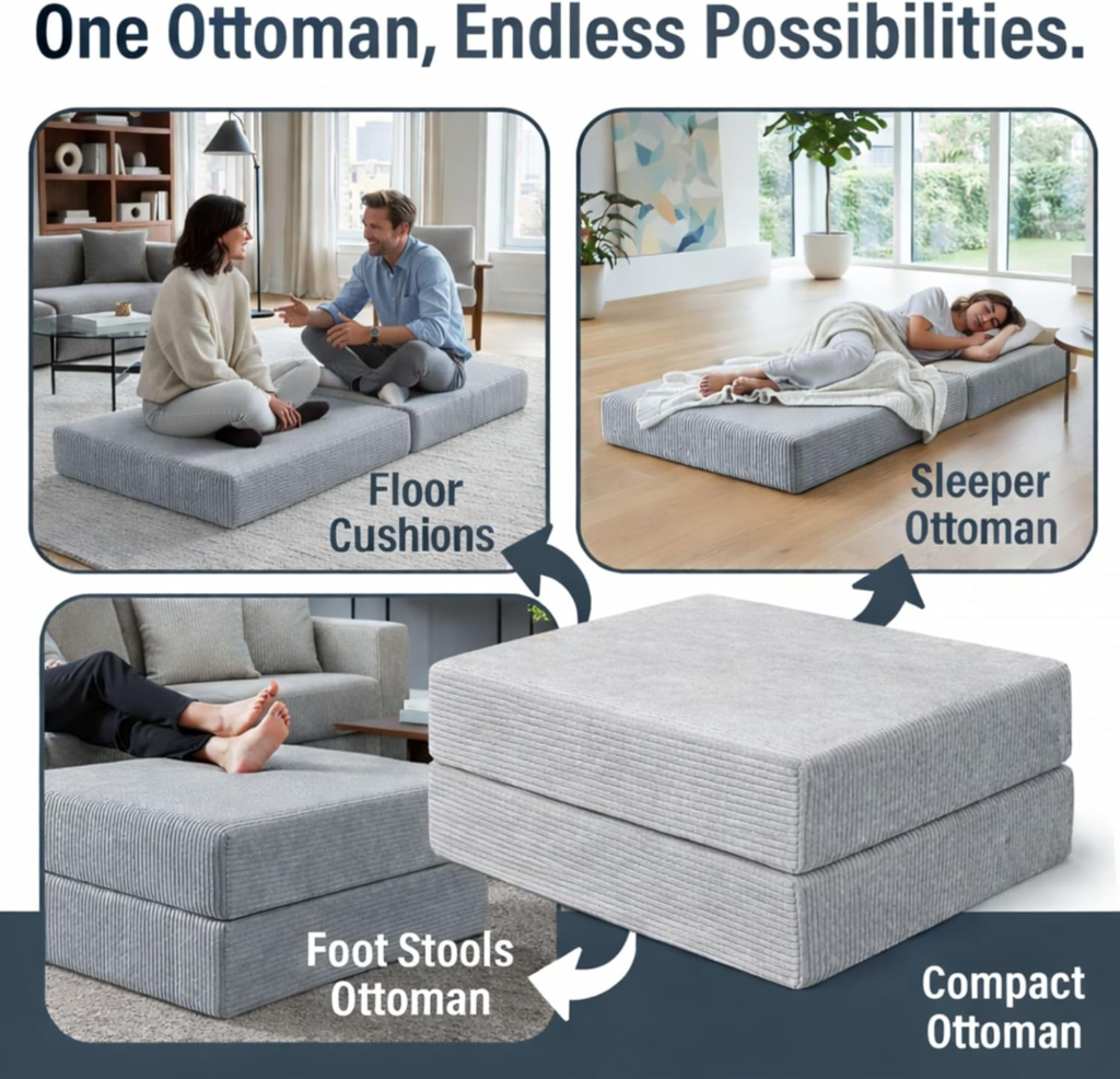 Not all sectionals are oversized.TUFT & FINCH 2-Piece Modular Corduroy Ottoman – Boneless Convertible Floor Sleeper & Guest Seating Mat – Pet-Friendly, High-Density CertiPUR-US Foam, Washable Covers, Anti-Slip Base – Light Grey. See Current Price on Amazon Here.
