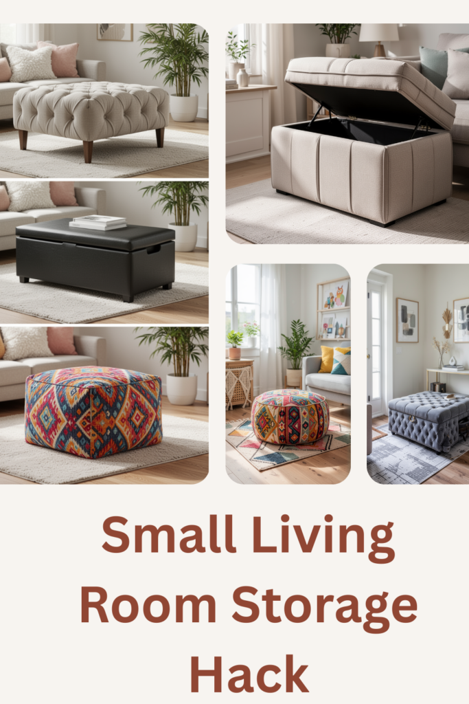 In small homes, furniture that serves multiple purposes can make a big difference. A storage ottoman provides hidden space for blankets, pillows, or seasonal items while also working as extra seating or a small table. This helps keep the room organized without adding bulky furniture.